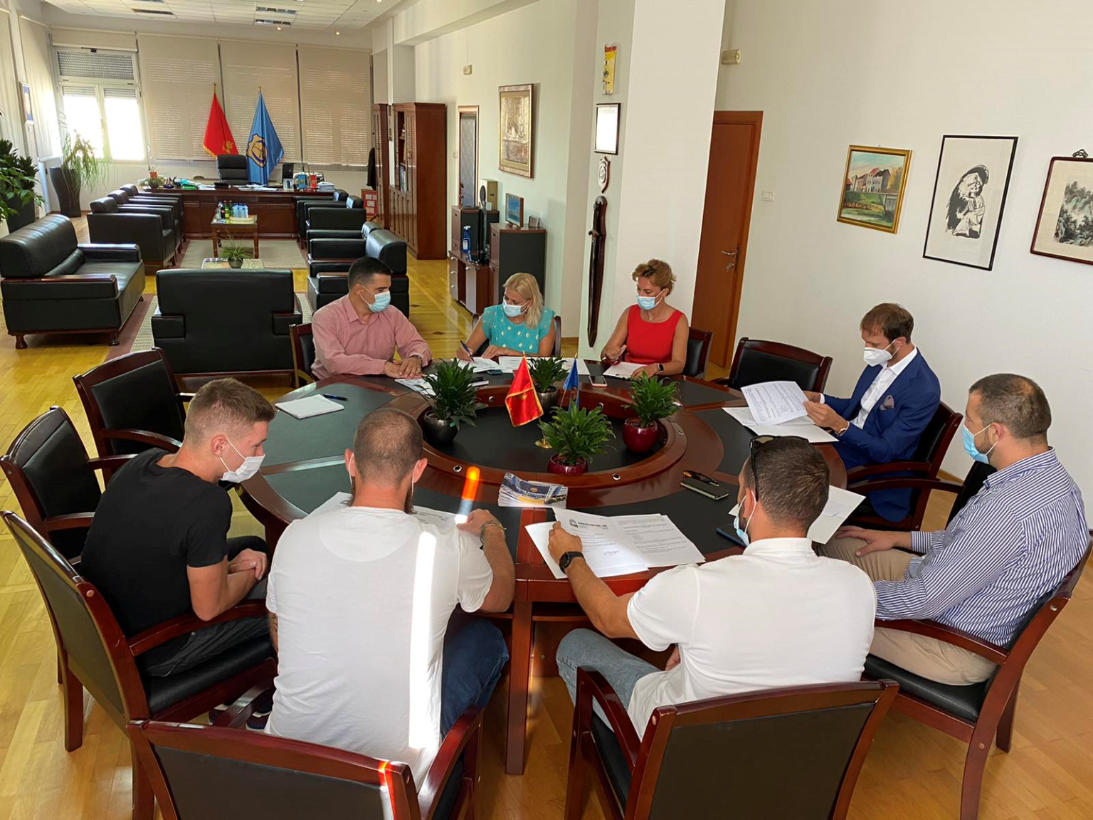 Sastanku u kabinetu predsjednika opštine prisustvovali su i igrači – kapiten Igor Radonjić, Vjekoslav Vučinović i Vasilije Samardžić.