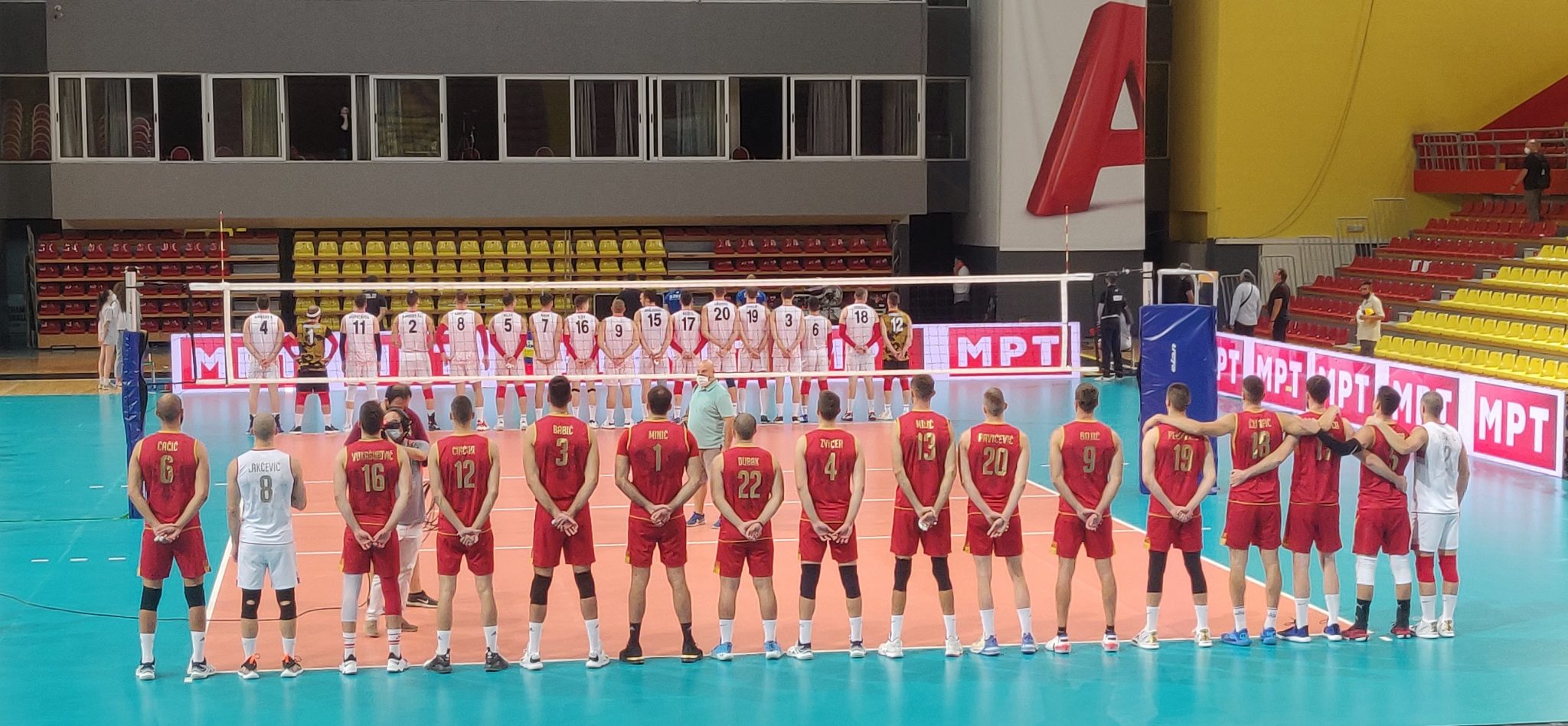 U odnosu na meč sa Sjevernom Makedonijom, u startnoj postavi naše reprezentacije Marko Bojić je zamijenio Ivana Zvicera, a utakmicu sa Slovačkom  su počeli Rajko StrugarMiloš ĆulafićVojin ĆaćićIvan JečmenicaBlažo Milić i libero Nikola Lakčević.