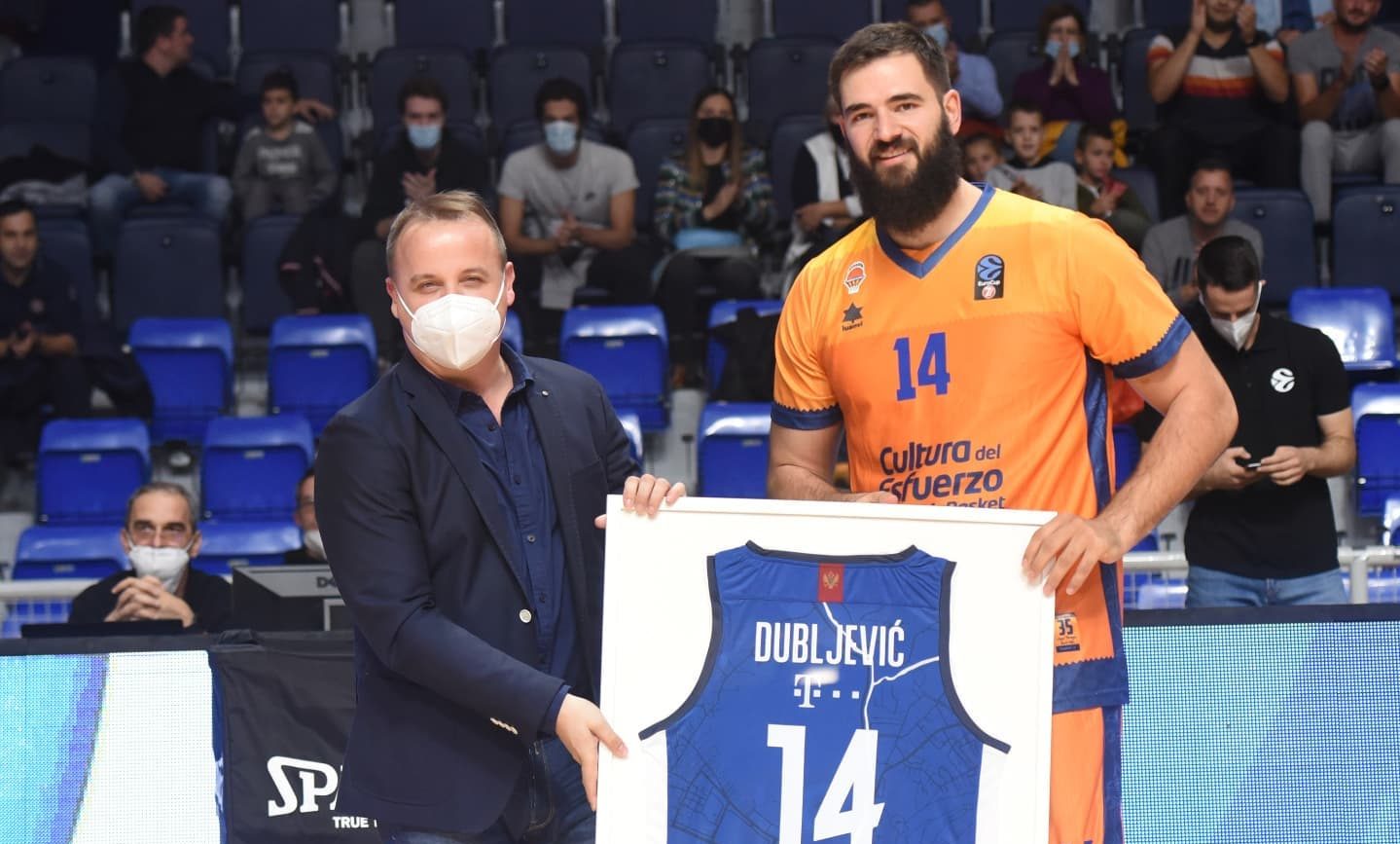 Prije meča Dubljević je dočekan ovacijama. Od kluba je dobio poklon “plavi” dres sa broj 14 koji je nekada nosio u Budućnosti.
