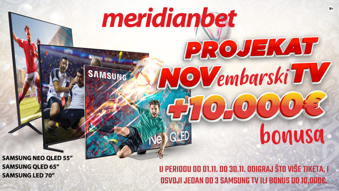 Sportska kladionica Meridian poklanja tri Samsung TVa i do 10 000eur bonusa – Izaberite pametan ekran za vaš dom.