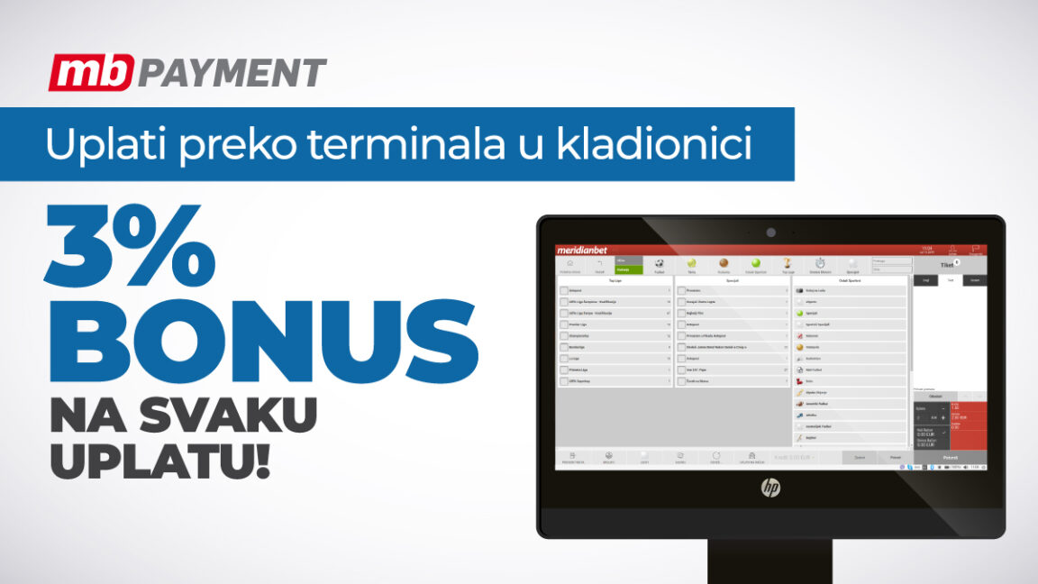 Odlazak do sportske kladionice Meridian, svakog puta, na svaku uplatu, možete začiniti sa 3% bonusa putem SST terminala!