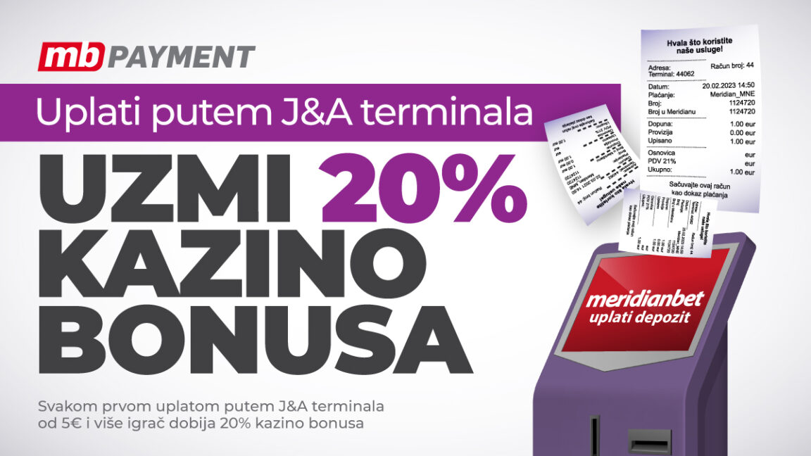 J&A terminale, pronaći ćeš na svim bolje snadbjevenim pumpama i marketima. Svakog dana, na prvu uplatu veću od 5€, meridianbet.me korisicni osvajaju čak 20% casino bonusa!