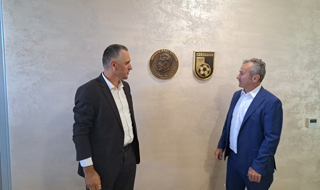 Plaketa za poseban doprinos razvoju fudbala u Beranama dodijeljena je Fudbalskom savezu Crne Gore i predsjedniku Dejanu Savićeviću.
