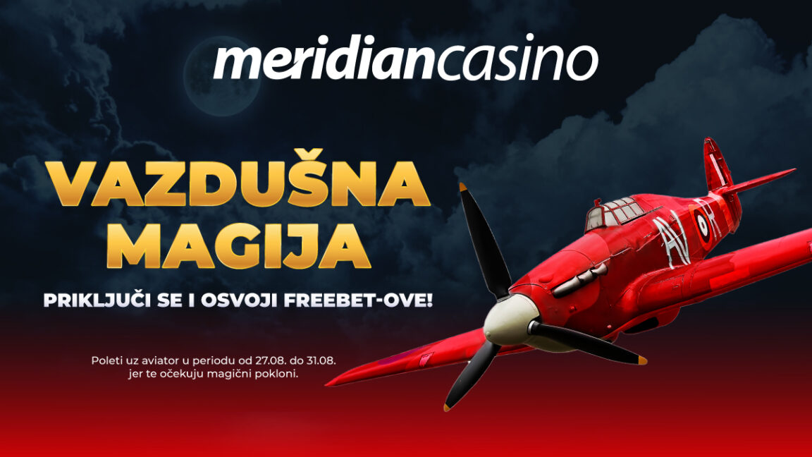 Meridian Casino u vazduhu pušta pravu magiju. Ne propusti priliku da budeš među čak 10 srećnih dobitnika, kako bi svoje Aviator opklade pretvorili u savršen dobitak, bez ulaganja!