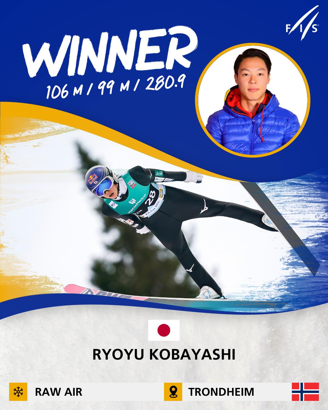 Japanac Rjoju Kobajaši pobjednik je takmičenja u skojaškim skokovima koje je za Svjetski kup danas održano u norveškom Trondhajmu.