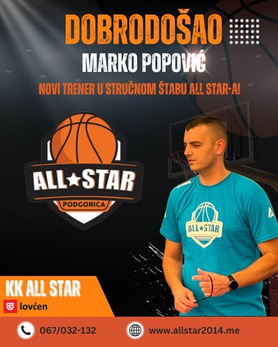 Nekadašnji košarkaš, kapiten Budućnosti, reprezentativac Crne Gore vodiće juniore i kadete All Stara, objavio je mladi klub iz Podgorice.