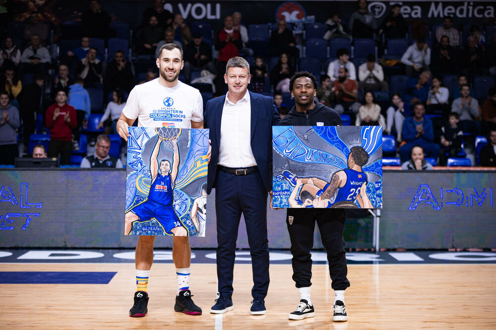 Uoči meča, Košarkaški klub Budućnost je uručio poklone bivšim igračima Kenanu Kamenjašu Mekinliju Rajt, koji od ove sezone nose dres evroligaša.
